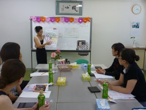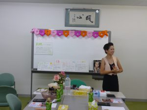 メイクアップ講習という事で、今回初めて女性限定のセミナーでした!会議室内もいつもとは少し違い、先生がアロマやお花を置いて下さっていたのでとっても華やか♪