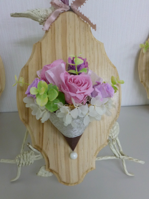 今回は、飾りフレームを使用して、プリザーブドフラワーを自由に飾ってみました。